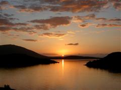 Unser geplanter Spaziergang am Seeufer fiel dann sehr kurz aus, da wir feststellen mussten, daß sich alles Land ringsum in privater Hand befindet und eingezäunt ist. Dafür erlebten wir von unserem Balkon einen herrlichen Sonnenuntergang.
